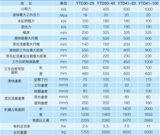 本机器为集中按钮控制,可实现手动调整和半自动循环两种操作规范。机器的工作压力、快速下行和减速下行的行程范围,可根据工作需要进行调节。它能实现带顶出和不带顶出两种工艺方式,每种工艺方式中又有定压成形和定程成形两种工艺动作可供选择。主缸在压制后具有保压、延时及回程等功能,而顶出时则有顶出延时、退回等动作。保压延时和顶出延时的时间均可由时间继电器调定。
